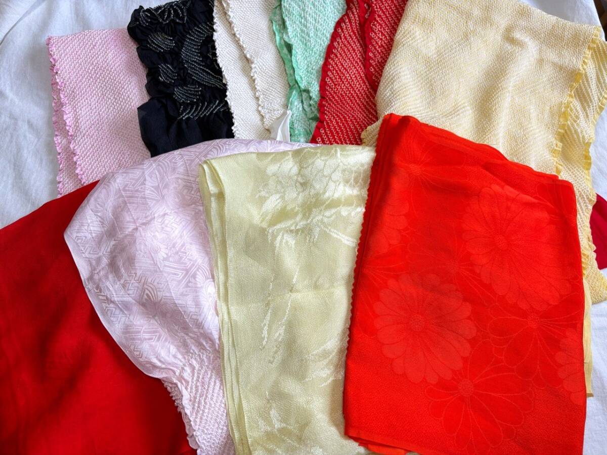 0037 ★帯揚げ*まとめ*10点セット*色デザインいろいろ*和柄*中古*着物*和装*和服*和装小物*レトロ*レディース*女性*お得★