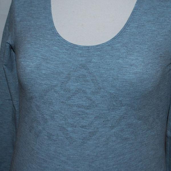 よく伸びる綿ストレッチ竹炭練り込みのあったか素材で、編地の変化でお腹を支えます。