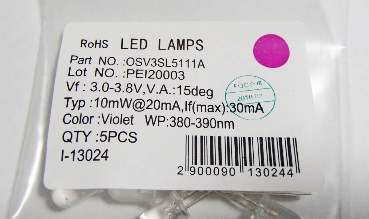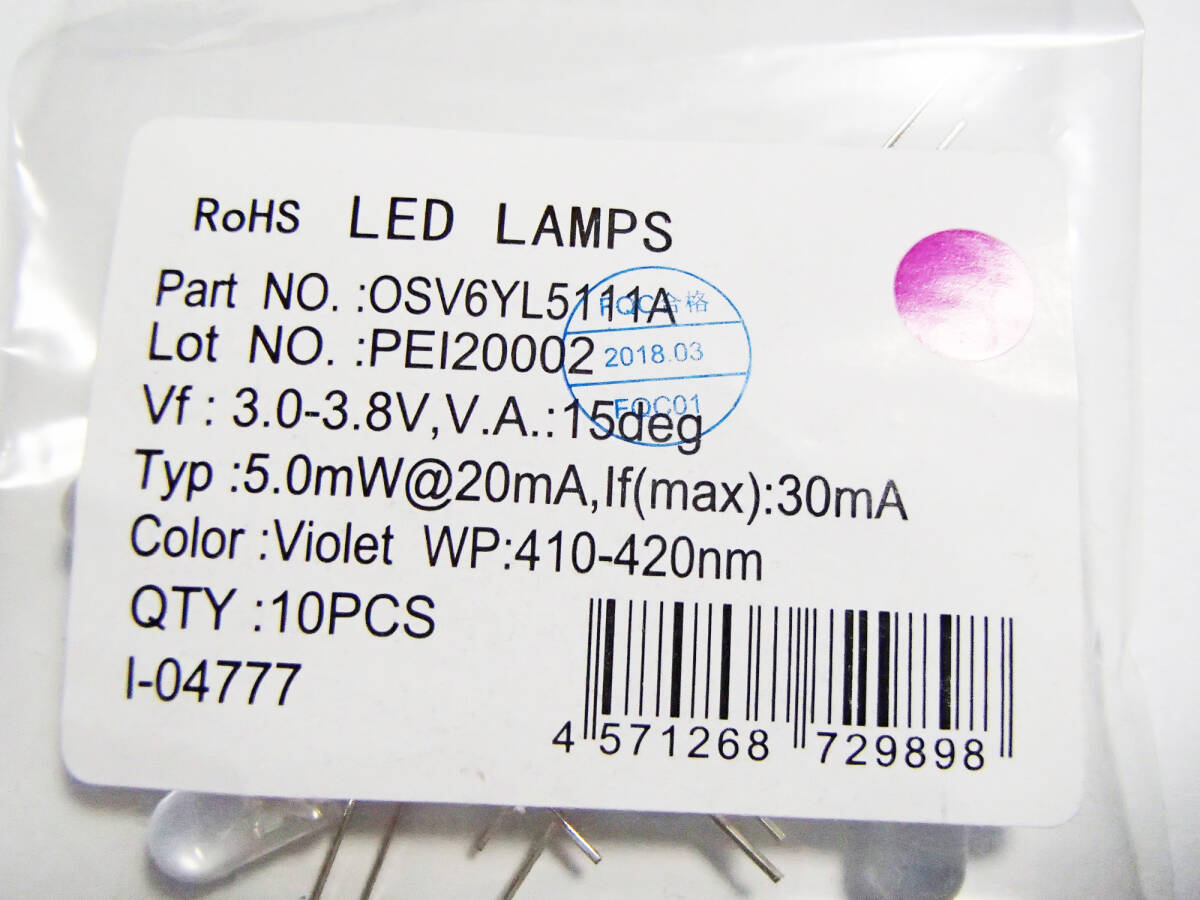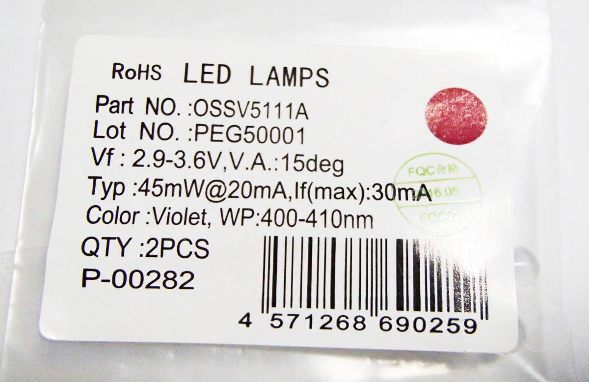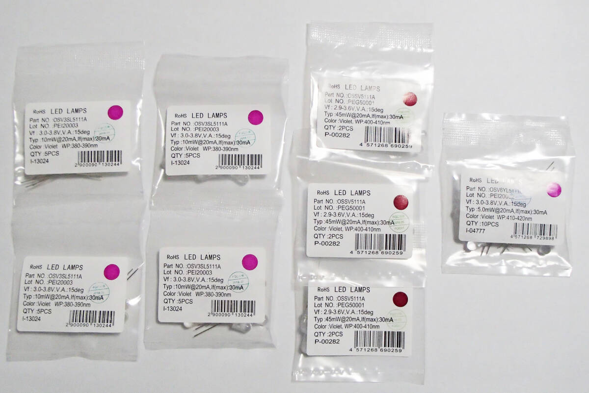 [送料無料] 砲弾型 紫外線LED 380~390nm:20個 400~410nm:6個 410~420nm:10個 未開封品
