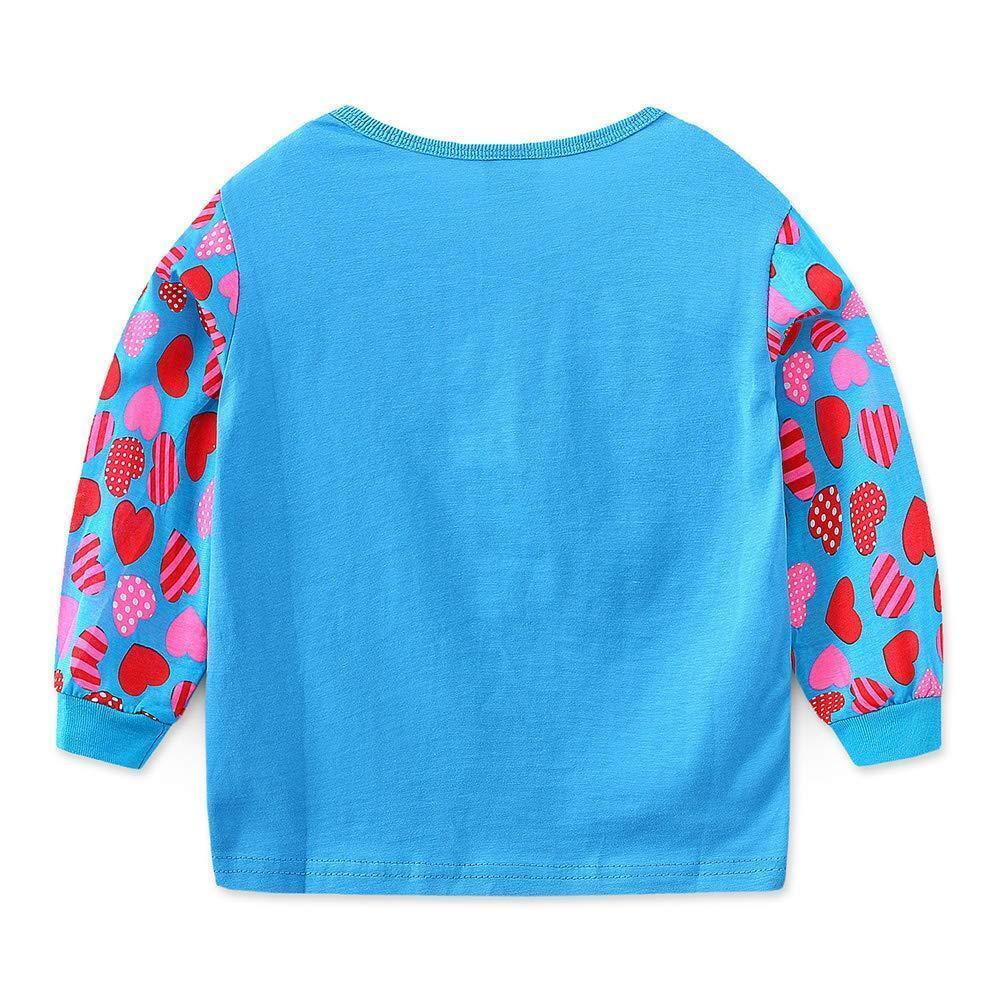 鮮やかなブルーベースにハート柄がキュートな袖とボトムス