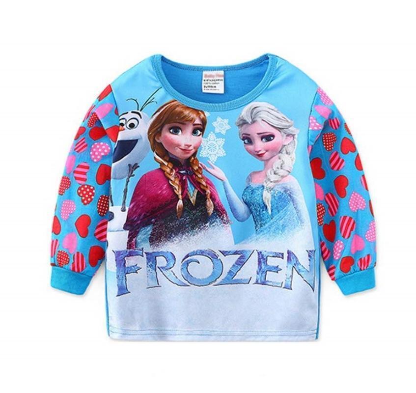 アナとエルサ、オラフがプリントされた長袖の上下セットで、お子様の夜を魔法の世界で彩ります。