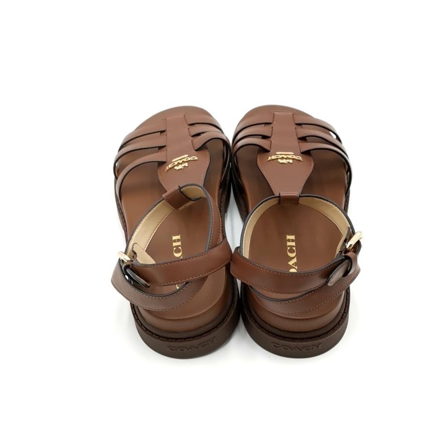 ・送料無料 超美品 コーチ COACH フラニーサンダル 靴 シューズ アンクルストラップ CR866 FRANNY LEATHER SANDA CWH-11002526JDC1 レザー 本革 US8B 24.5cm相当 茶 ブラウン系 レディース