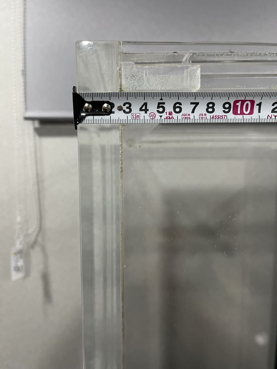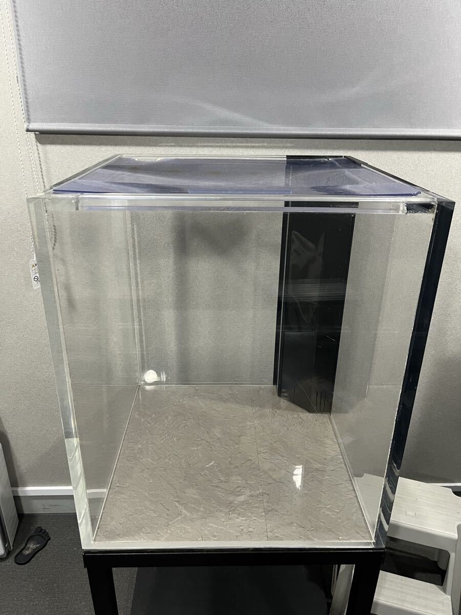 特注品で板厚は25mmの極厚になります。水族館のフロアの片隅にあるような水槽だと思います。