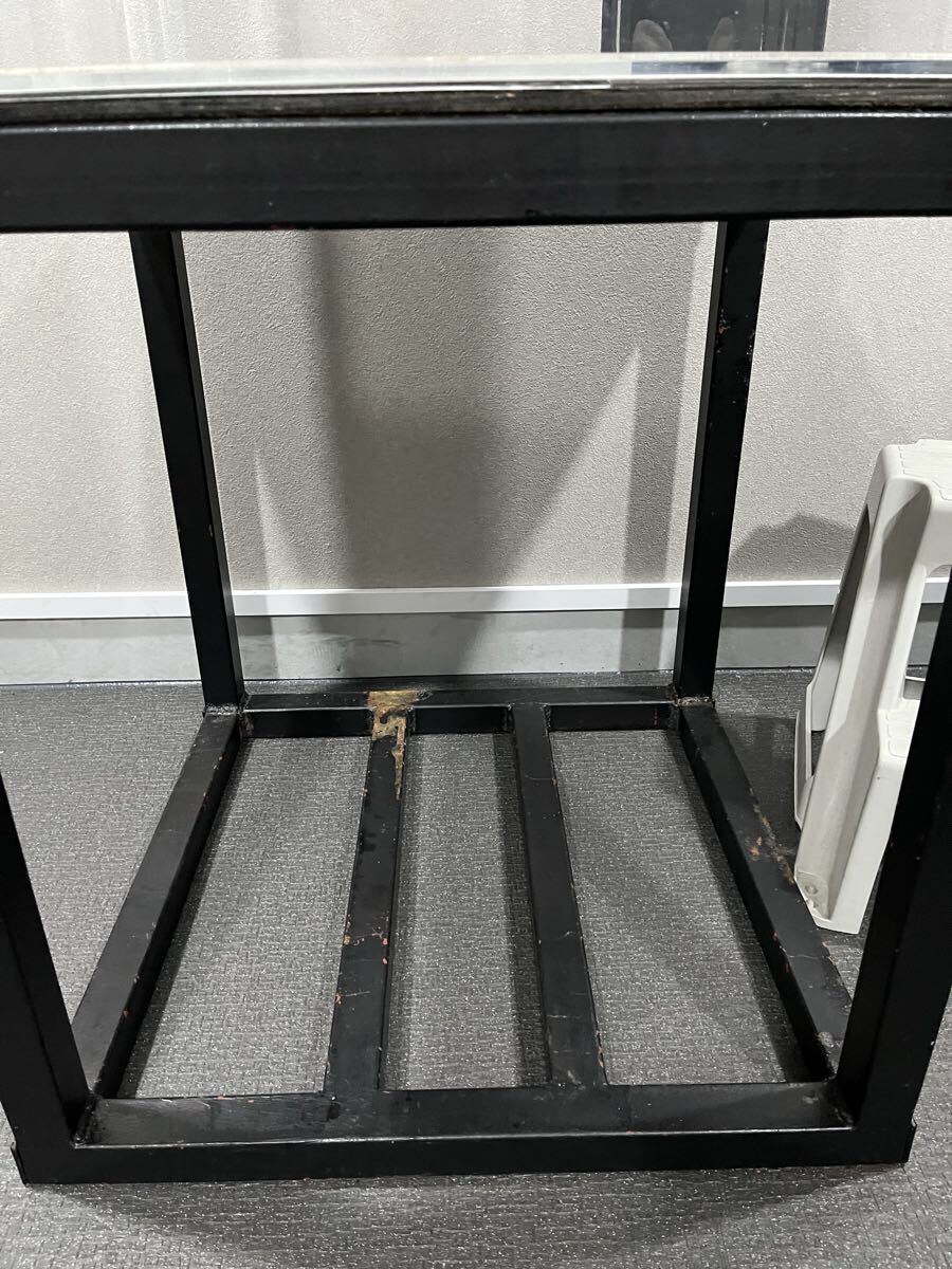 水槽台はスチール角パイプで高さは80cmになります。一部錆ありますので気になる方は塗り直したりしていただいたらいいかと思います。
