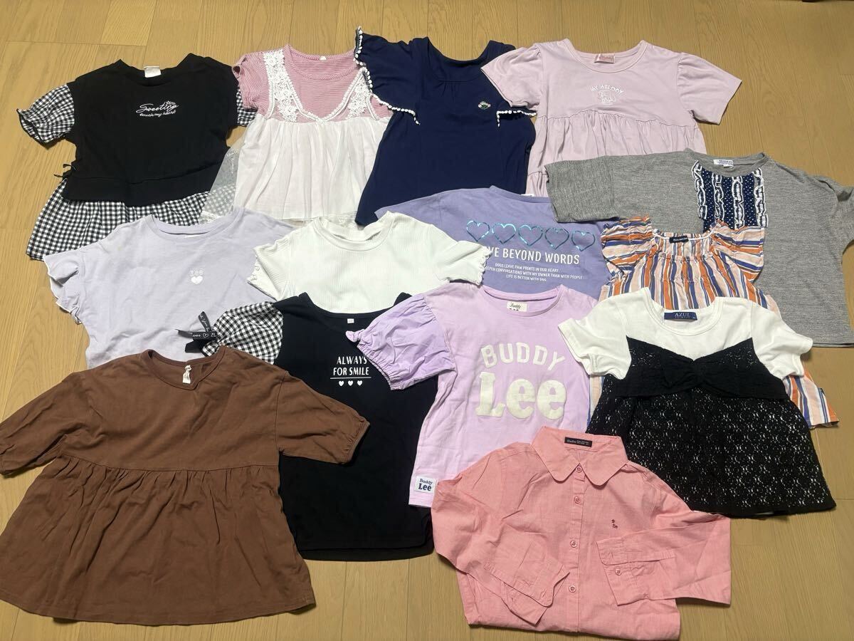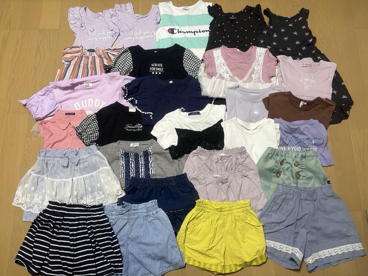 女の子の春夏服28着をまとめて出品致します。半袖Tシャツ13着、長袖シャツ1着、キュロット8着、ミニスカート1着、ワンピース5着です。サイズ120の品もありますが、130センチのサイズ感で着ていました。子どもが使った中古品になり、うっすらシミや毛羽立ちがある品があります。中にはほとんど着ていないものも含まれています。これは着たくない!と感じるような物はないと思います。全てまだまだ着て頂ける状態だと思いますが、中古品であることをご理解頂き、落札後はノークレームノーリターンでお願い致します。発送方法はヤマト宅急便で100サイズとなります。ご検討下さい。