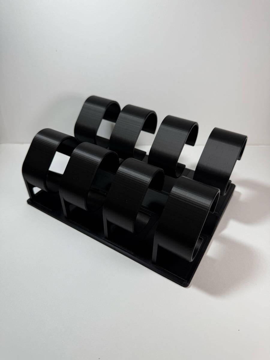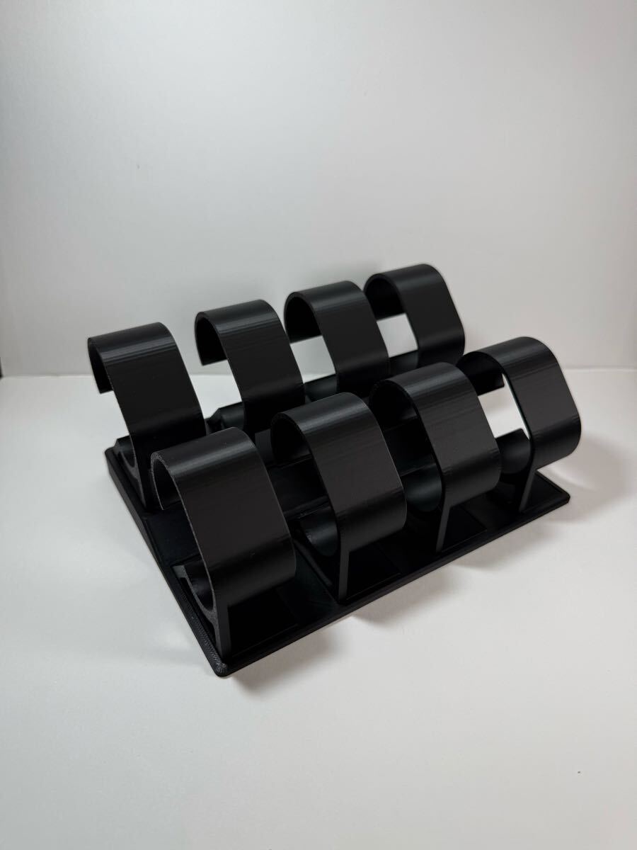 シンプルでスタイリッシュなデザインの時計用スタンドです。耐久性のあるプラスチック素材を使用しており、お気に入りの腕時計をしっかりと支えます。ディスプレイ用や収納用に最適です。