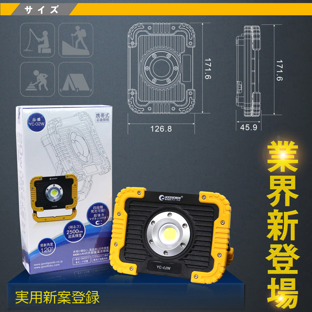 | セット内容 | 投光器本体、AC充電器、取扱説明書、保証書 | ||