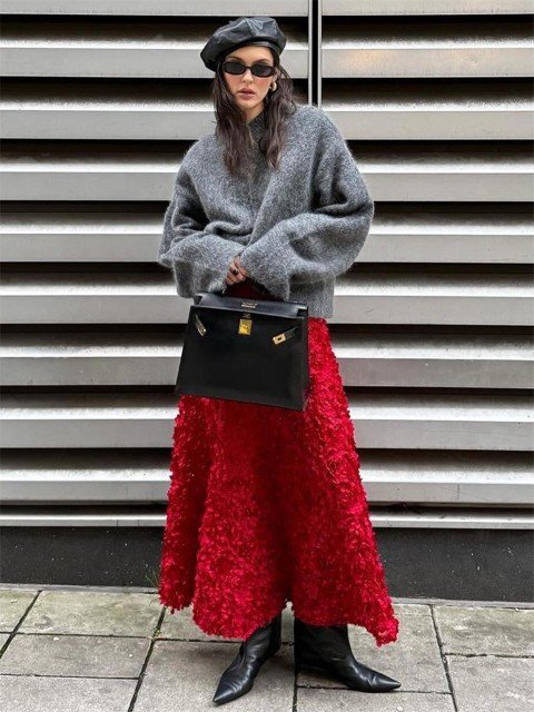 ロングスカート マキシ丈 フレアスカート きれいめ シンプル カジュアル お出かけ レディース L レッド