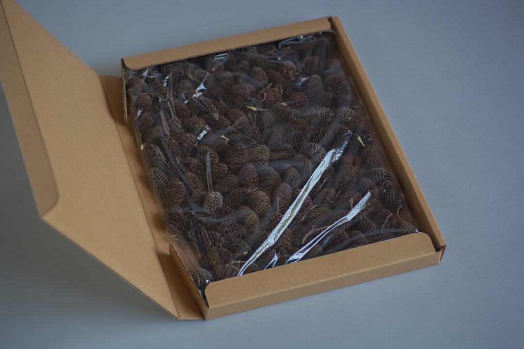★好評いただいている「ヤシャブシの実」を、追跡サービスのあるクリックポストでの発送をいたします。大粒のものは箱いっぱいで125粒前後となりました。