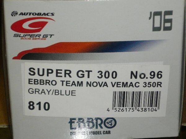 1/43 EBBRO SUPER GT300 EBBRO TEAM NOVA VEMAC 350R No.96 グレー/青です。箱に少し痛みがありますので、ご了承の上入札下さい。商品の状況は写真でご判断の上、ノークレーム・ノーリターンでお願いします。保証はできませんが、定形外郵便での発送も可能です。