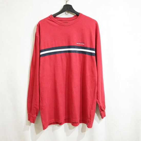 商品名 K851 90sビンテージ CHAPSラルフローレン 長袖Tシャツ■1990年代製 表記Lサイズ 赤 レッド 刺繍 ロンT マルチカラー アメカジ 古着 古着卸