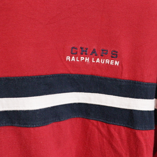 K851 90sビンテージ CHAPSラルフローレン 長袖Tシャツ■1990年代製 表記Lサイズ 赤 レッド 刺繍 ロンT マルチカラー アメカジ 古着 古着卸