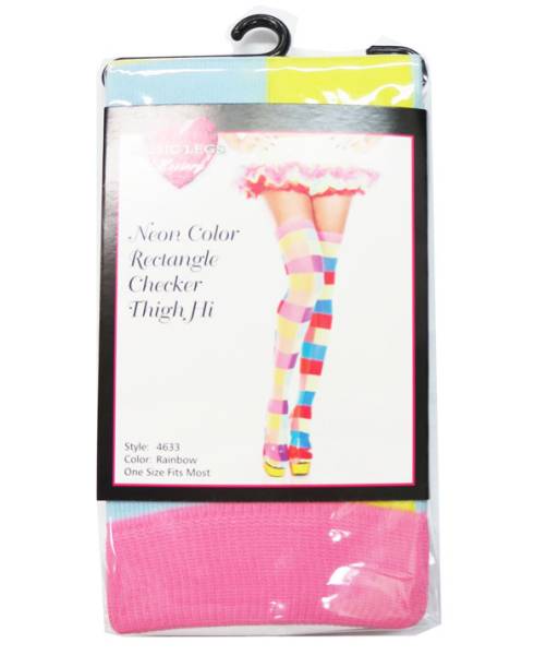 A634)MusicLegsマルチカラーカラフルチェックニーハイソックス ML4633 レインボー タイツ ストッキング 派手 ダンス衣装 靴下 サイハイ