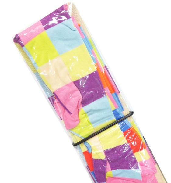 発色の良いマルチカラーがド派手な、チェックのサイハイソックス☆