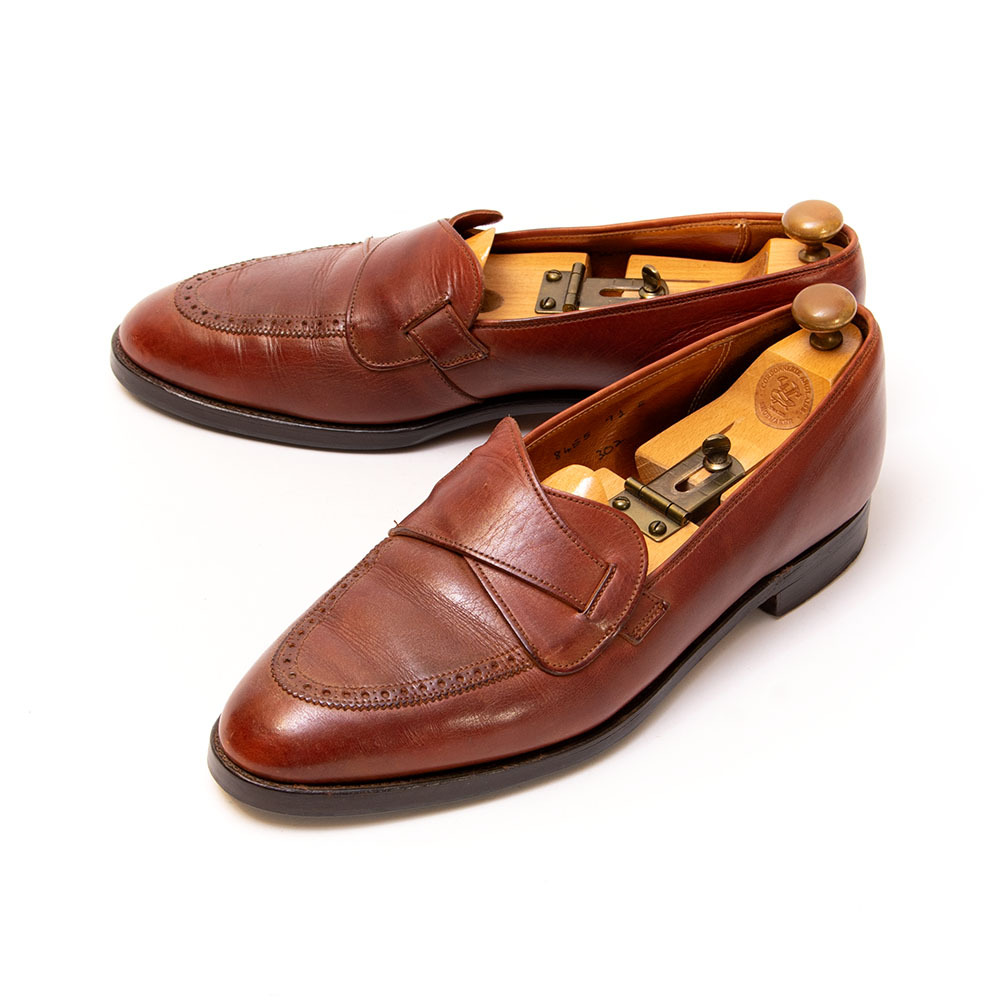 | 【 商品名 】 【10957XL】クロケット&ジョーンズ バタフライローファー ブラウン NEW&LINGWOOD(ニュー&リングウッド)別注 ヴィンテージ品 サイズ9.5E Crockett&Jones 英国の伝統的なニュー&リングウッドのビスポークのデザインを元としたバタフライローファー。サドル部分の特徴的なデザインとモカシンに沿った穴飾りがクラシックさを引き立たせます。古い製造のため小傷などございますが、着用に支障はなく気軽に履けます。 ・メーカー:クロケット&ジョーンズCrockett&Jones ・表記サイズ:9.5E 表記サイズに関するページはこちらです。 ・アウトソール全長:30.5cm (※おおよそのサイズとなります) 最大幅:10.5cm ・アッパー:カーフ ・カラー:ブラウン ・付属品:無し ・程度【ABランク】 ※新品ではありません。USED品であることをご理解の上、入札をご検討下さい。