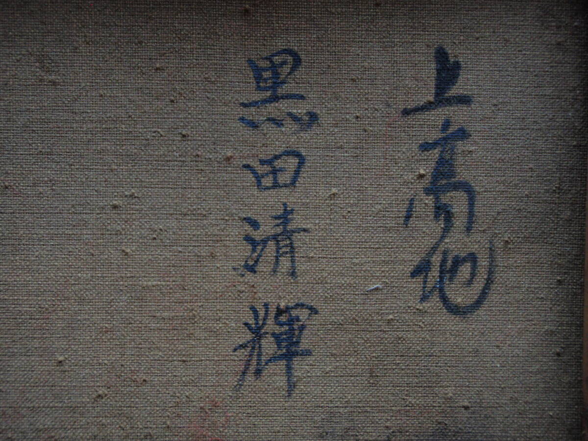 キャンバス裏に「上高地」 タイトルと黒田清輝