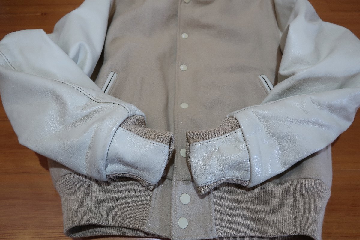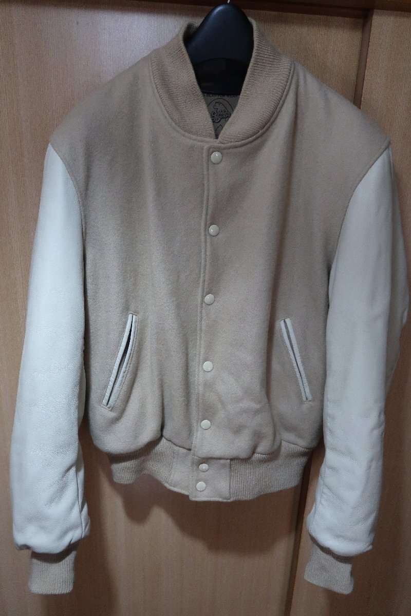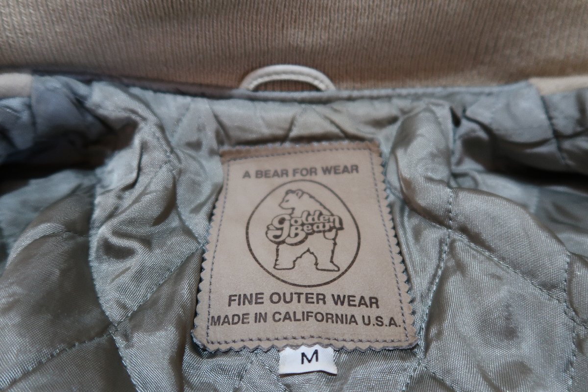 ゴールデンベア USA製 袖レザー スタジャン Mサイズです、肩幅約47cm 着丈約61cm 身幅約55cm 袖丈約62cmです、使用感があり袖や袖口の擦れがあります、発送は宅急便の送料元払いのみになります。