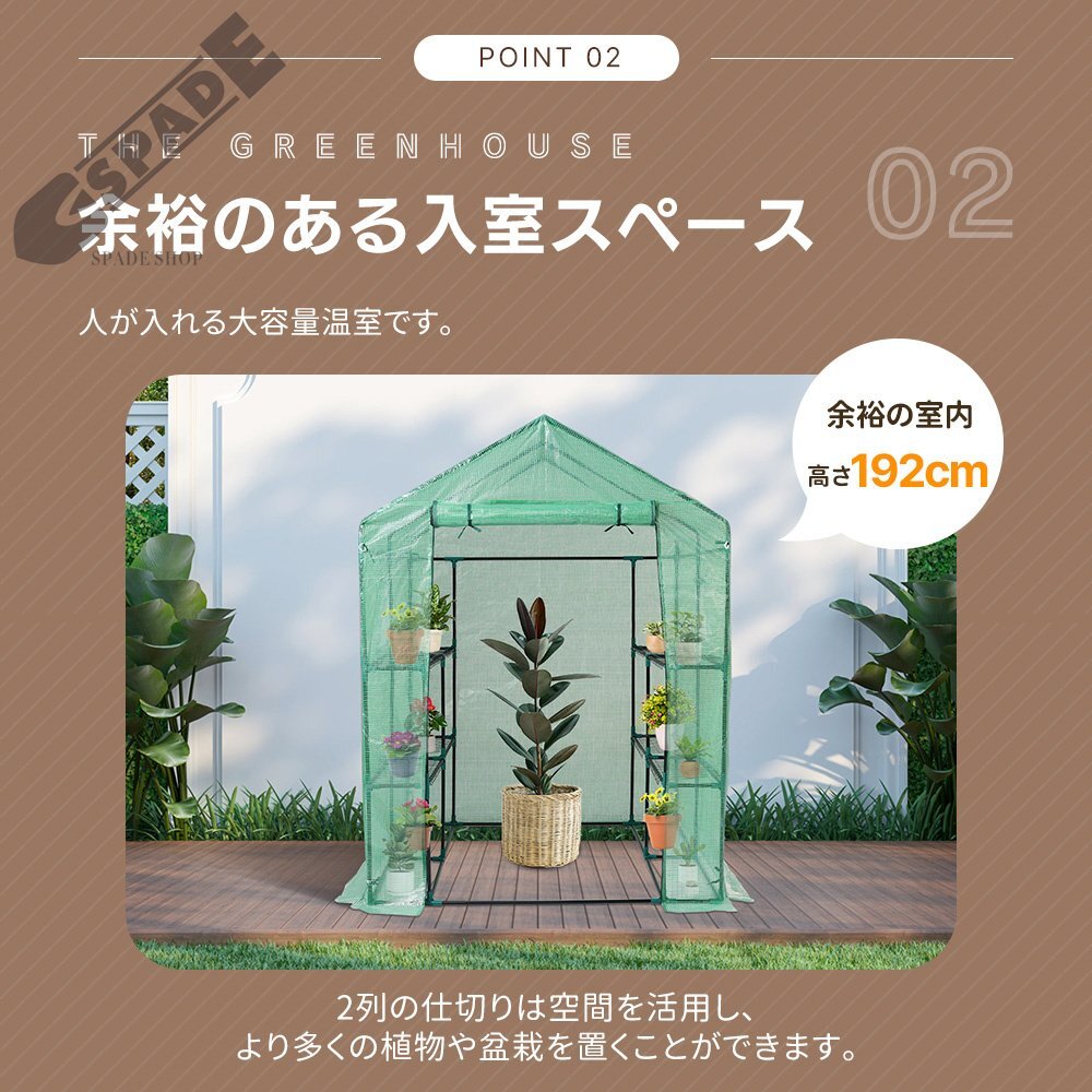 • 【四季を通じて使える魅力】冬は寒さから植物を守り、霜や低温の影響を避けて安心して育てられます。夏は直射日光を和らげ、葉焼けを防ぎます。豪雨からも植物を守り、ガーデニングを楽しむために最適な環境を提供します。