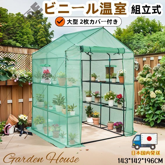 【国内発送】ビニール温室 大型 2枚カバー付き143*142*196CM 温室 左右2段 ベランダ 家庭用 ビニールハウス 家庭菜園 ガーデンハウス フラ