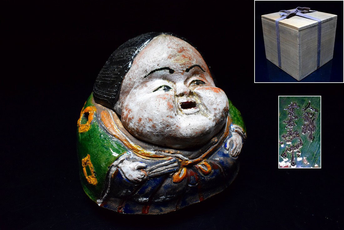 人形師 幸右衛門作 色絵 お多福 香炉 置物 伏見人形 土人形 郷土玩具 F856 |