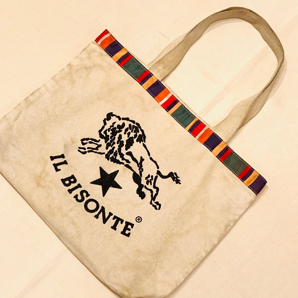 IL BISONTE イルビゾンテ ビッグ ロゴ マーク キャンバス トート バッグ ホワイト