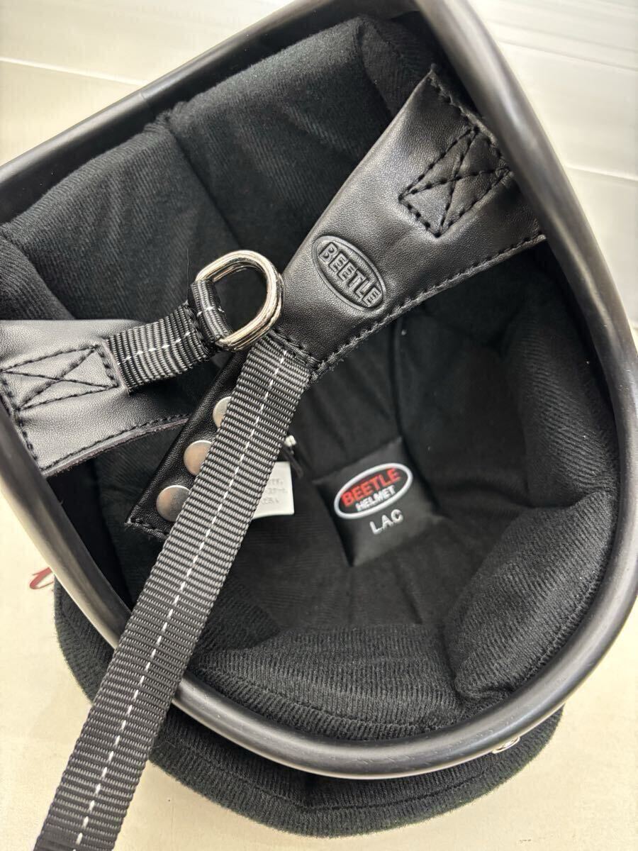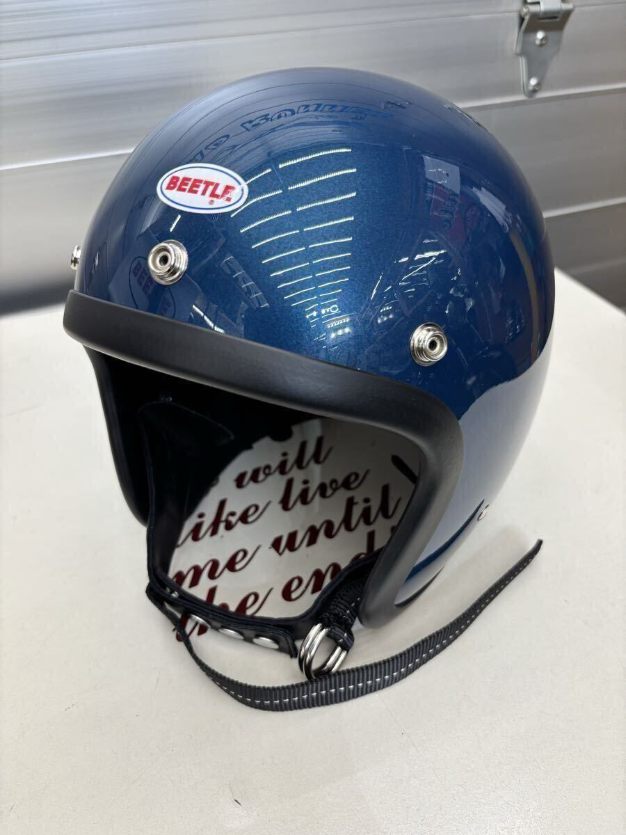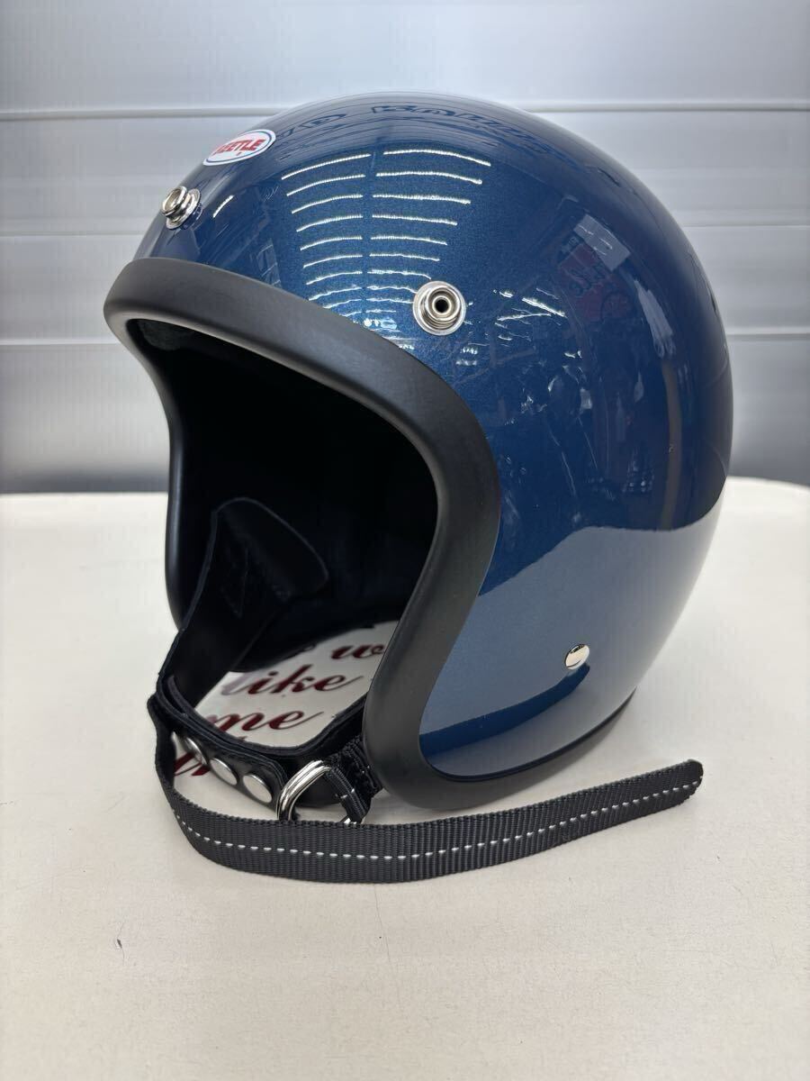 オールドヘルメットはダブルストラップの仕様が多く使われていて、金具、レザー部分がよりカッコ良さを引き立てます。