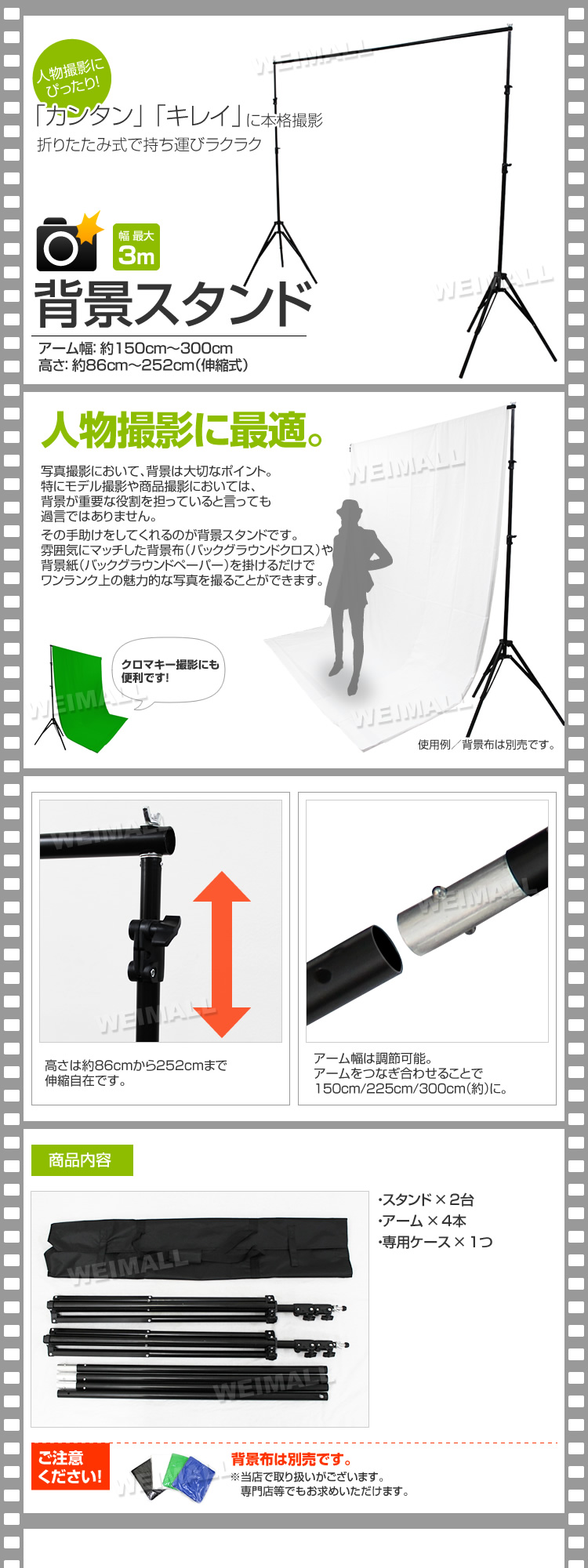 | 大型 撮影 背景スタンド 幅300cm 高さ252cm 伸縮 撮影スタンド 4 |