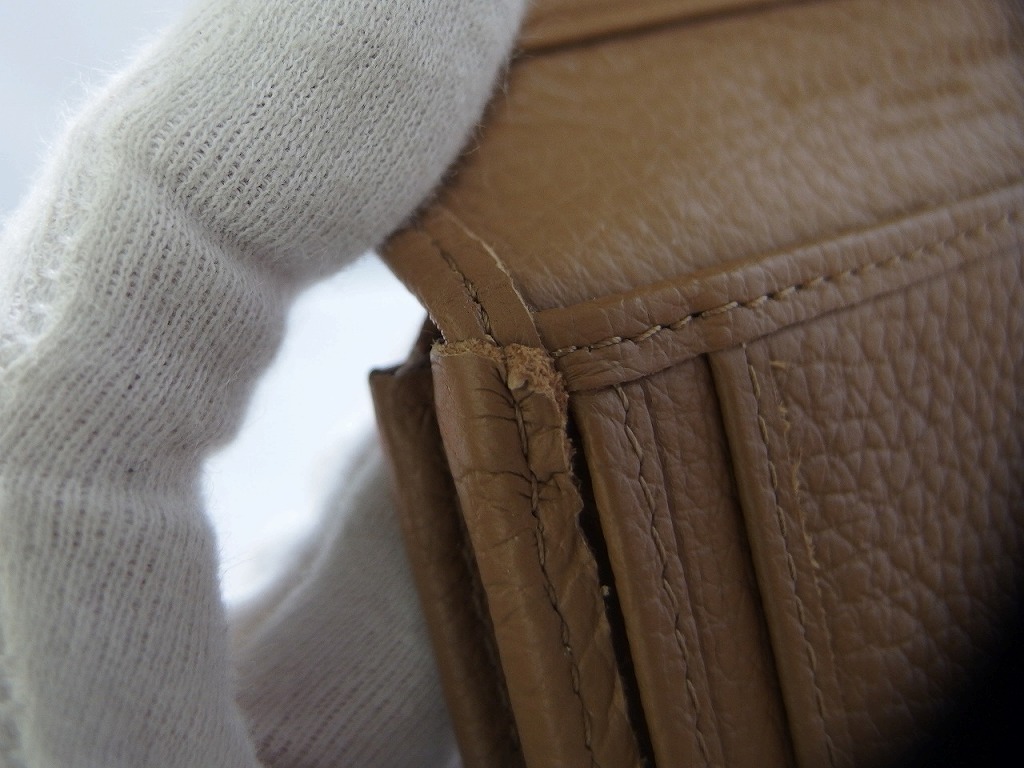 ※内側ロゴ付近に汚れ・欠け、内側に反り・ほつれ、小銭入れ部分に白い汚れのようなもの(写真7~10枚目をご参照ください)、化粧箱にキズがあります。