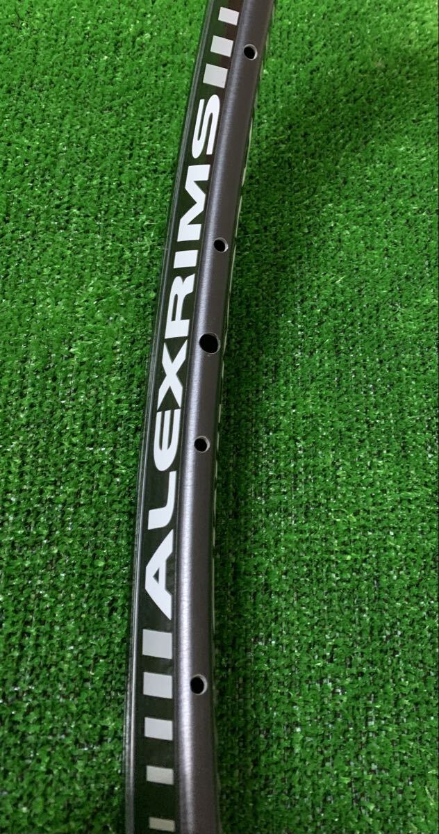 本来なら、デスクブレーキで使うリムですが、私はリムブレーキ様に手組みで使っていました。走行距離はたぶん3000kmぐらい?ニップル様の穴は、面取り済みです。