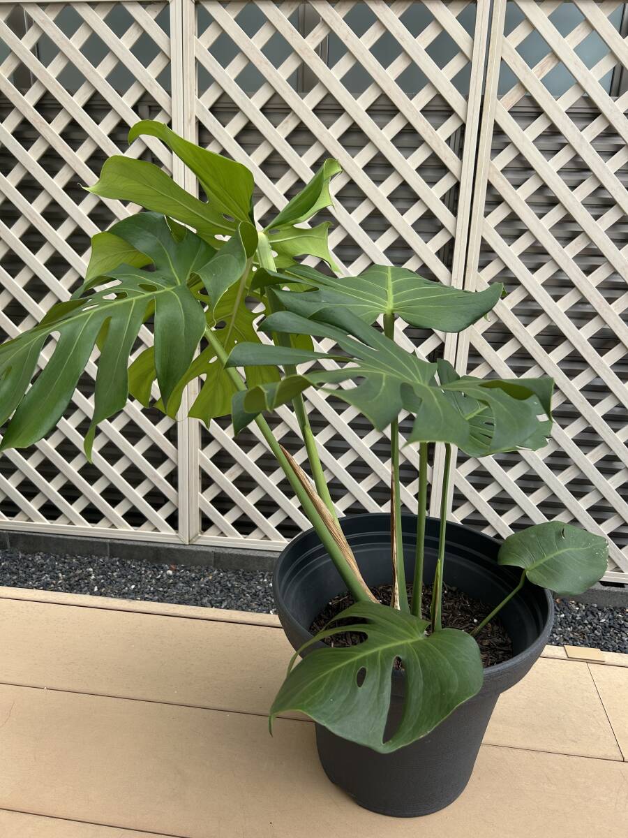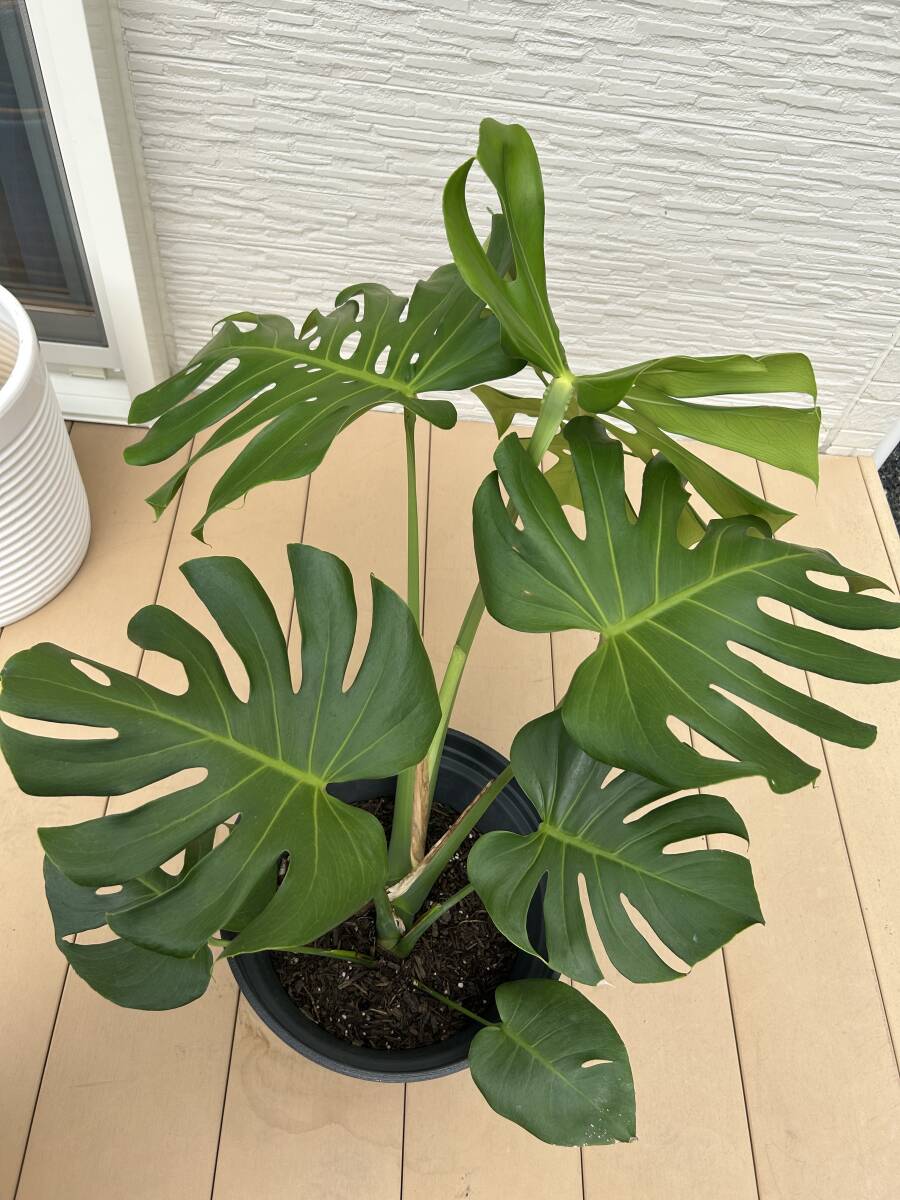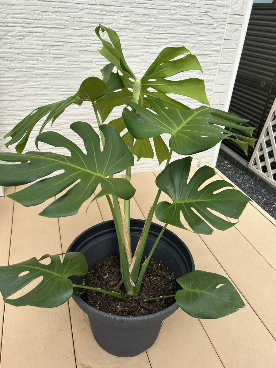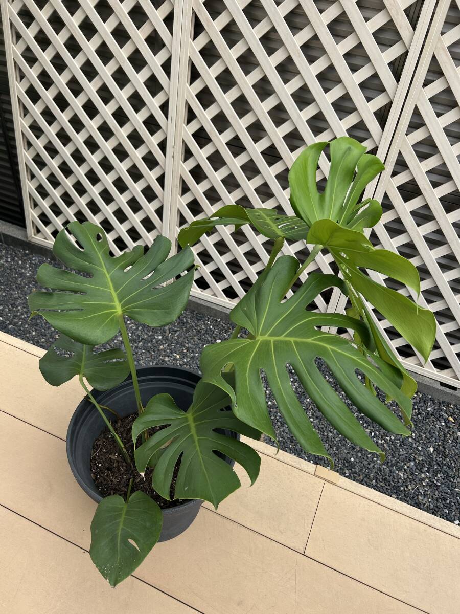 深い切れ込みのある大きな葉を持つ健康なモンステラ。