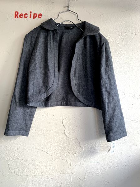 ◆O25◆Recipe レシピ 毛100% ボレロ ショートジャケット グレー サンプル品 やや難有