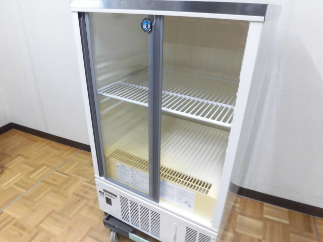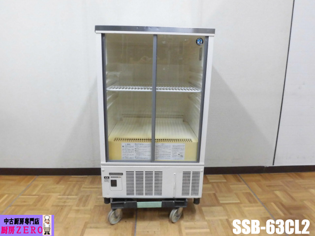 中古厨房 ホシザキ 業務用 小形 冷蔵ショーケース SSB-63CL2 100V 156L 中ビン92本 大ビン84本 スライド扉 後方キャスター 2℃~12℃