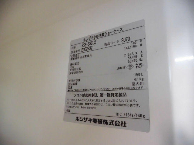 中古厨房 ホシザキ 業務用 冷蔵ショーケース SSB-63CL2 100V 156L