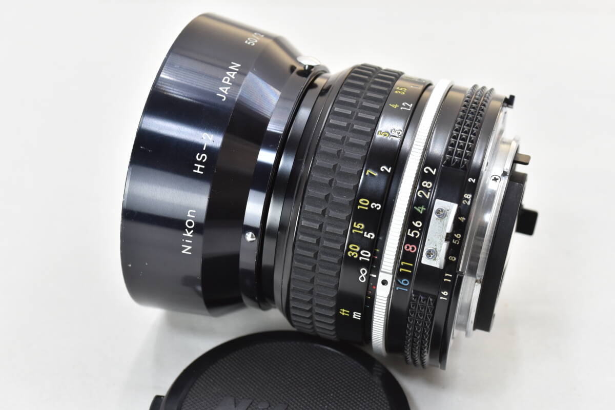 【ecoま】NIKON Ai NIKKOR 50mm F2(下4/5770) HS-2フード付き マニュアルレンズ