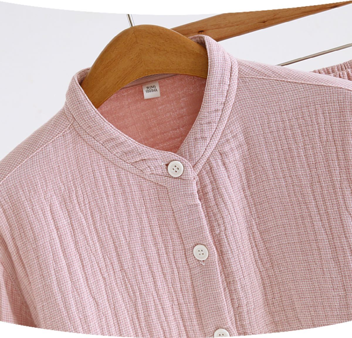 「暖かさ」と「ゆったり」を兼わ備えたデザイン。首元までしっかり覆って冷気の侵入を防ぎます。襟を立てればさらに暖かく。温性の高い暖かな着心地を実現しました。夏だけでなく一年中ガ一ゼを使いたい!というガ一ゼ好きさんにおすすめの、ぬくもりのある秋冬用ガ一ゼパジャマです。