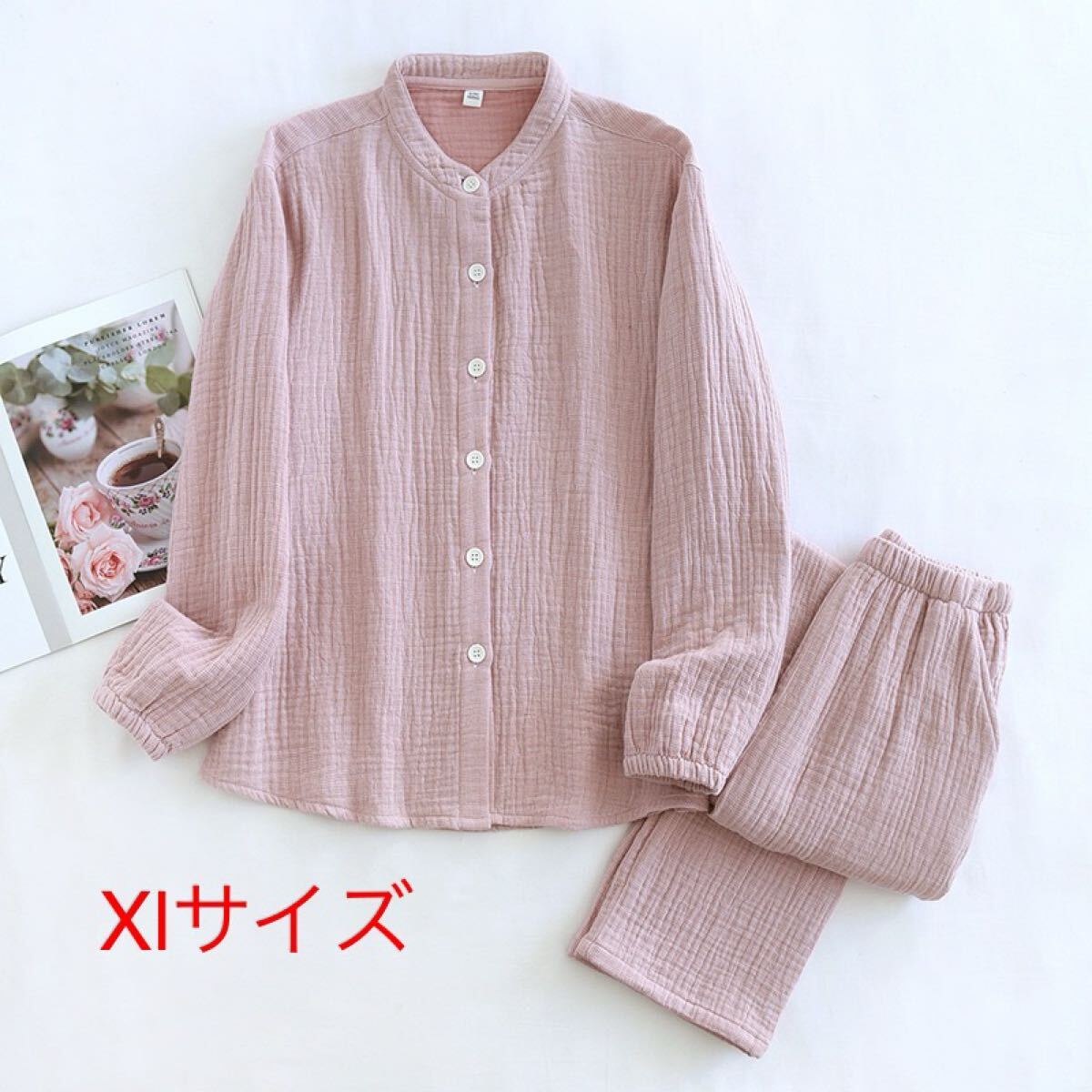 パジャマ レディース XL綿100% 4重ガーゼ 秋冬快眠ルームウェア部屋着プレゼント開襟入所入院プレゼント厚めブルー柔らか通気ピンク