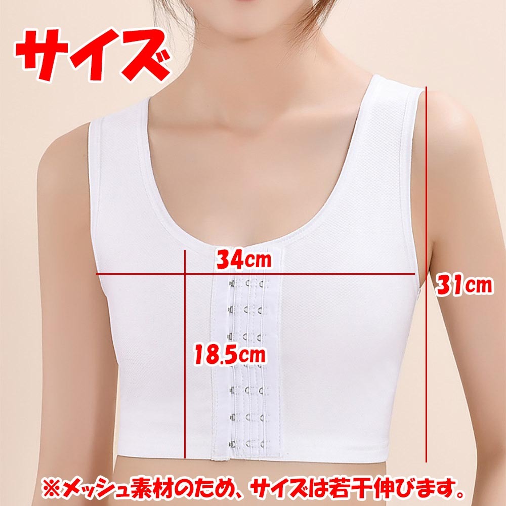 通気性の良いメッシュ生地を使用し、サラッと軽い着心地です。8連の3段ホックで微調整も可能です。肩が広めのタンクトップタイプで、ノンワイヤーの為、締めつけ感なく、長時間着用しても肩が痛くなりにくく、激しい動きも気にならないインナーです。