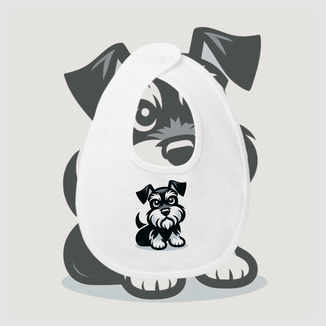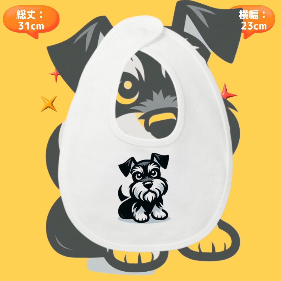 可愛らしいシュナウザーのイラストが映えるベビースタイ。
