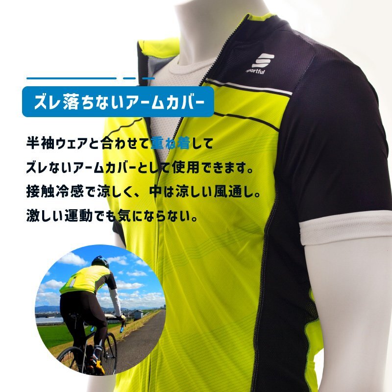 ・腕周りは日焼け防止のUVカットと通気性清涼感生地を採用。