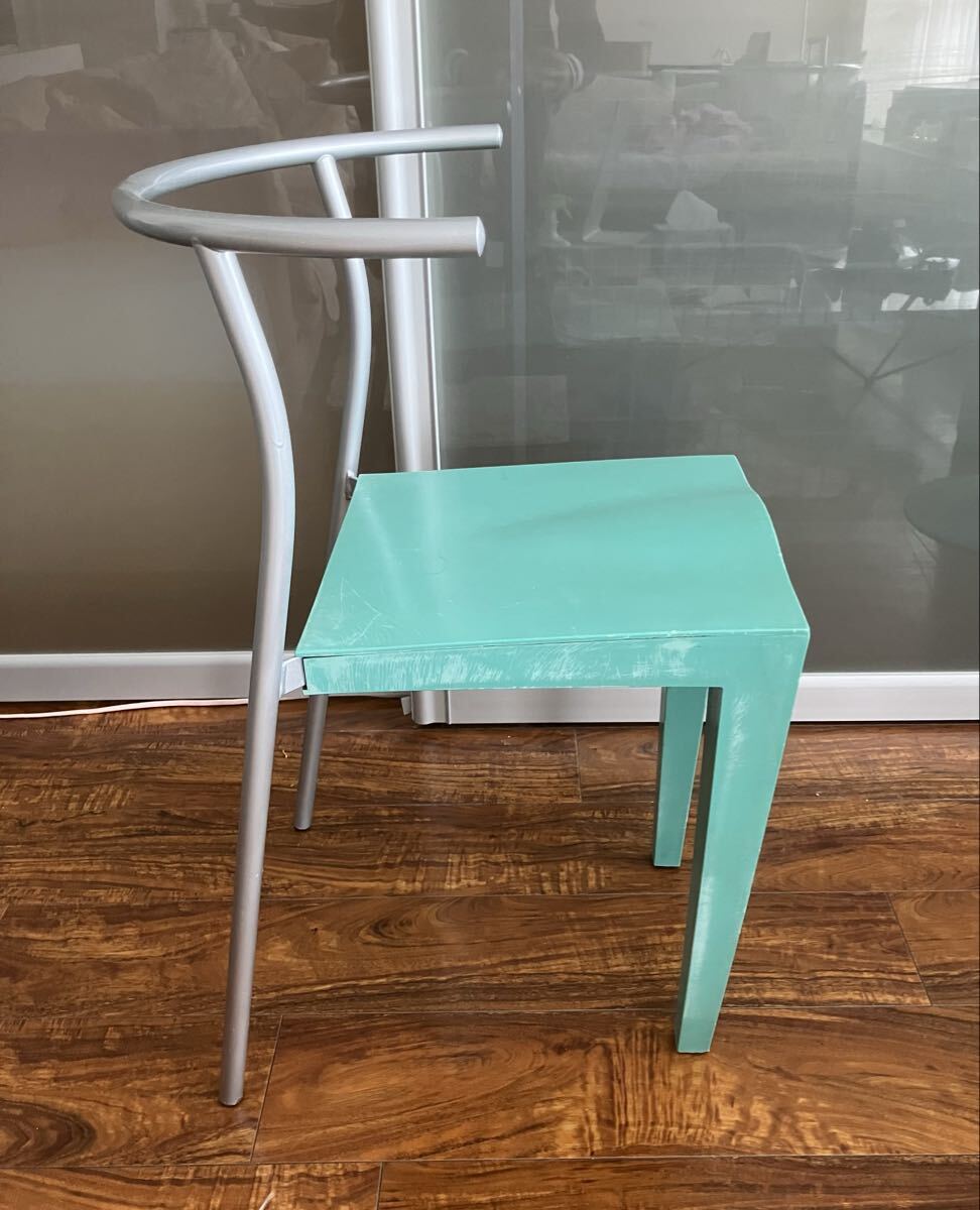 当時としては珍しくガーデニング用としても使用可能なポリプロピレン素材でスタルクらしい曲線でデザインされたとても個性的な一品です。カラーもペパーミント系のグリーン(ブルー)で一際存在感を醸し出しています。