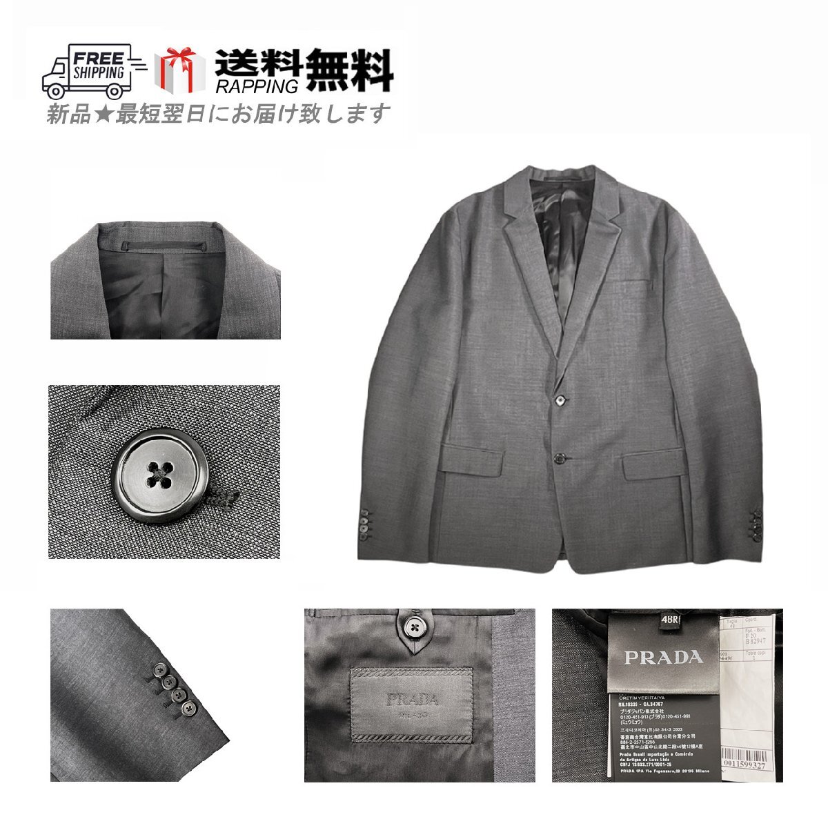 L792-48R.. PRADA プラダ ジャケット JK テーラード フォーマル シングル ビジネス メンズ イタリア製 ★ CALCE