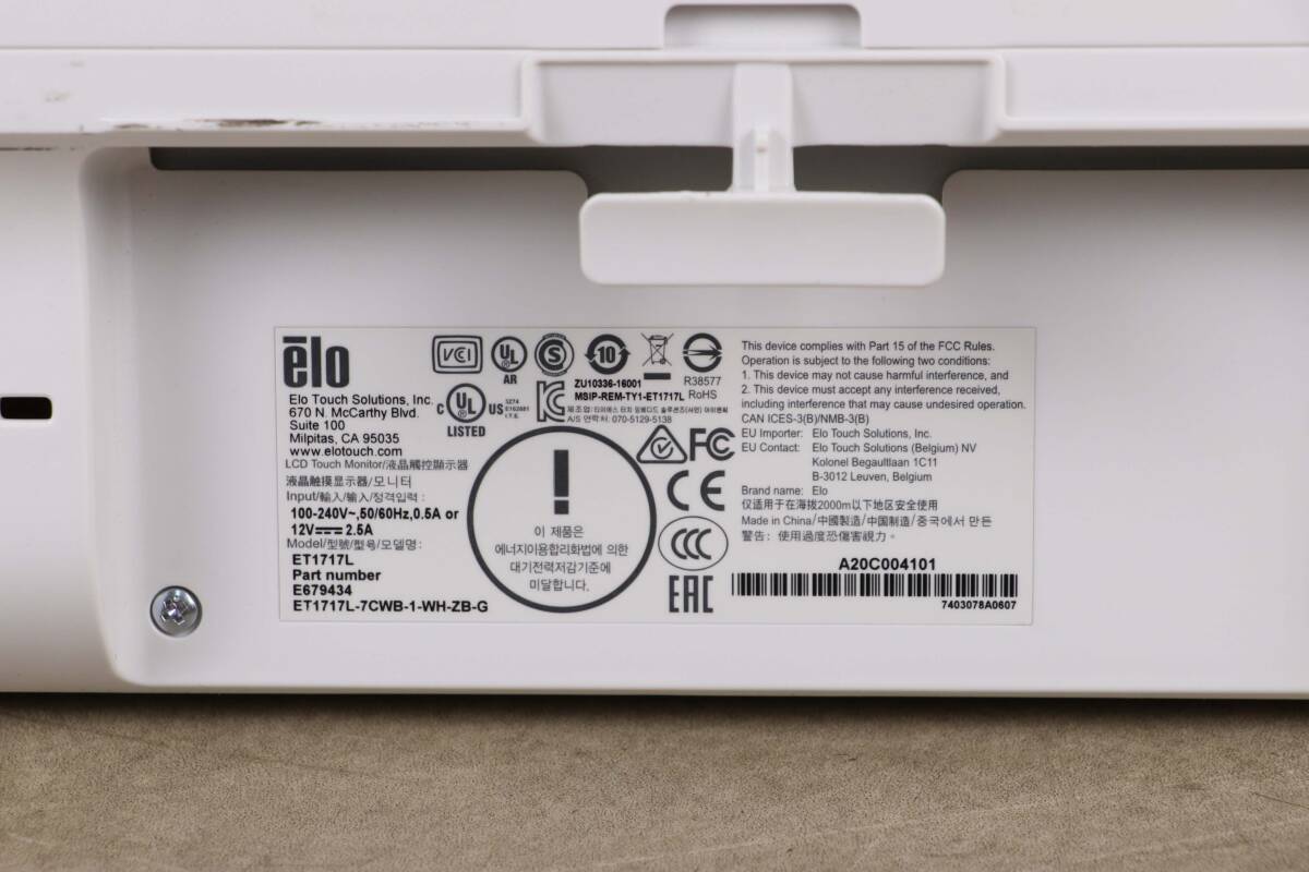 【メーカー/型番】 elo ET1717L-7CWB-1-WH-ZB-