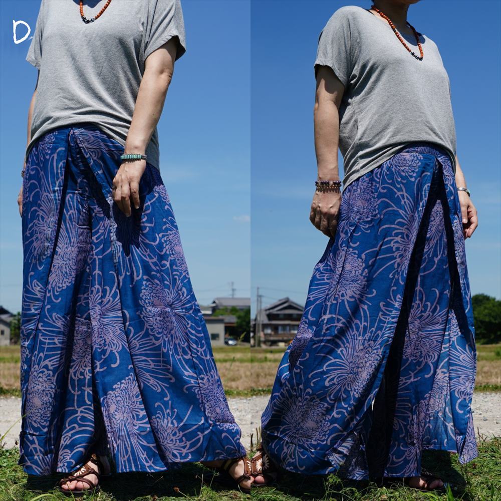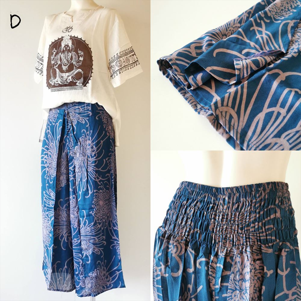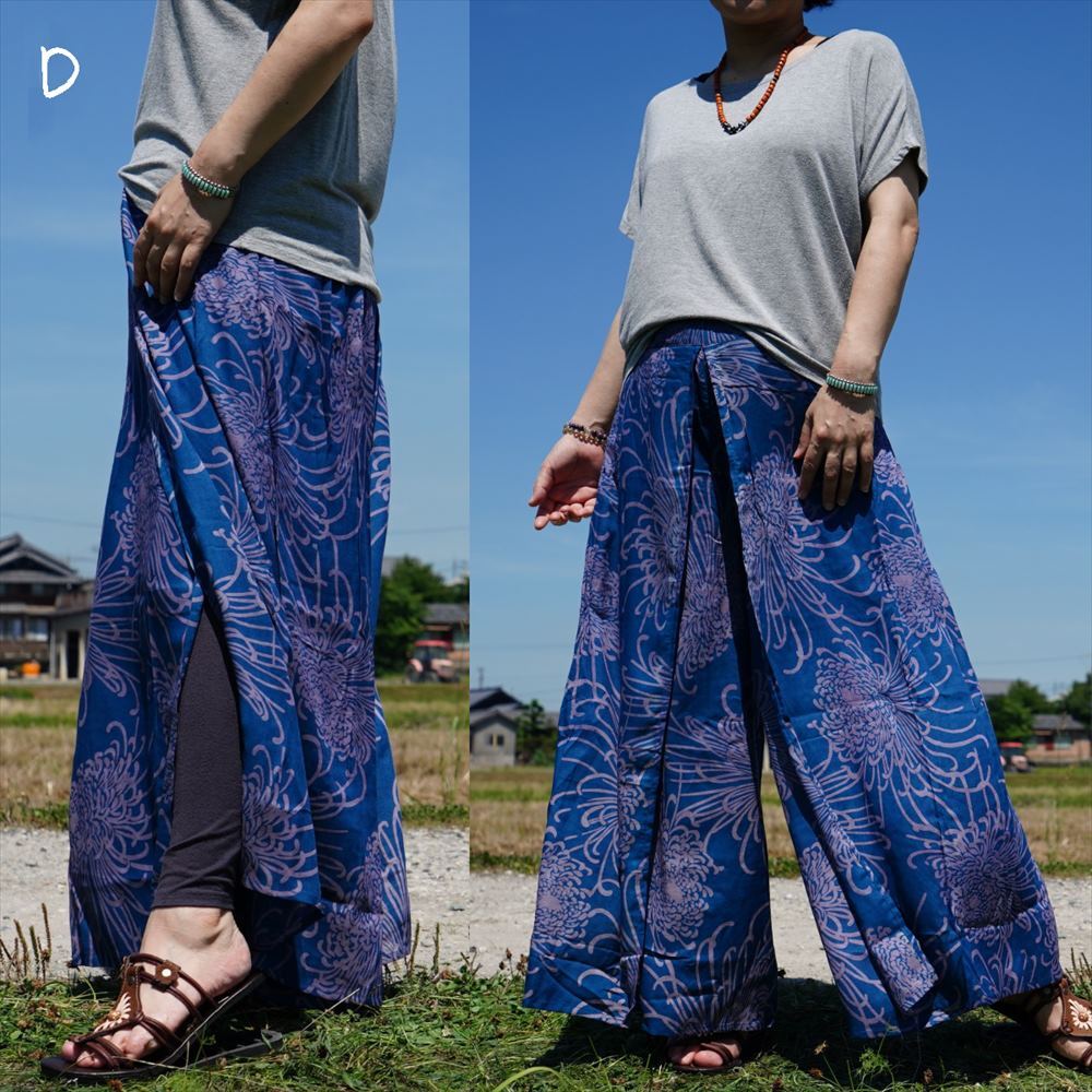 ★エスニック ラップパンツ 和柄 ボタニカル★送料込新品D★アジアン 巻きパンツ ワイドパンツ ヨガ ユニセックス ルームウエア