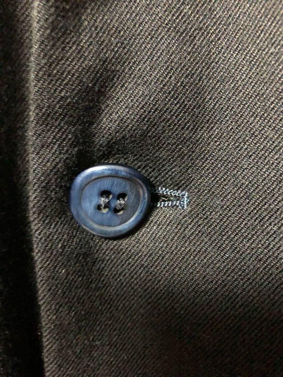 青みがかった曲がりボタン、裏地のパイピング仕上げなど作りは凝っています。