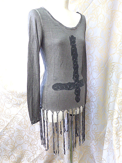 ahno48NO2 イタリア製 MAT&STEP フリンジ付き長袖カットソー ライトグレー/M-L・251026