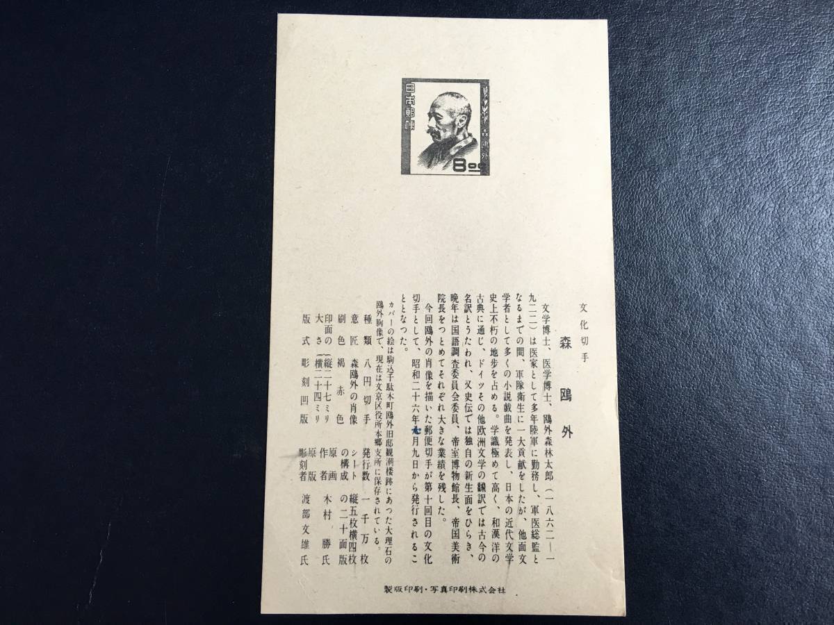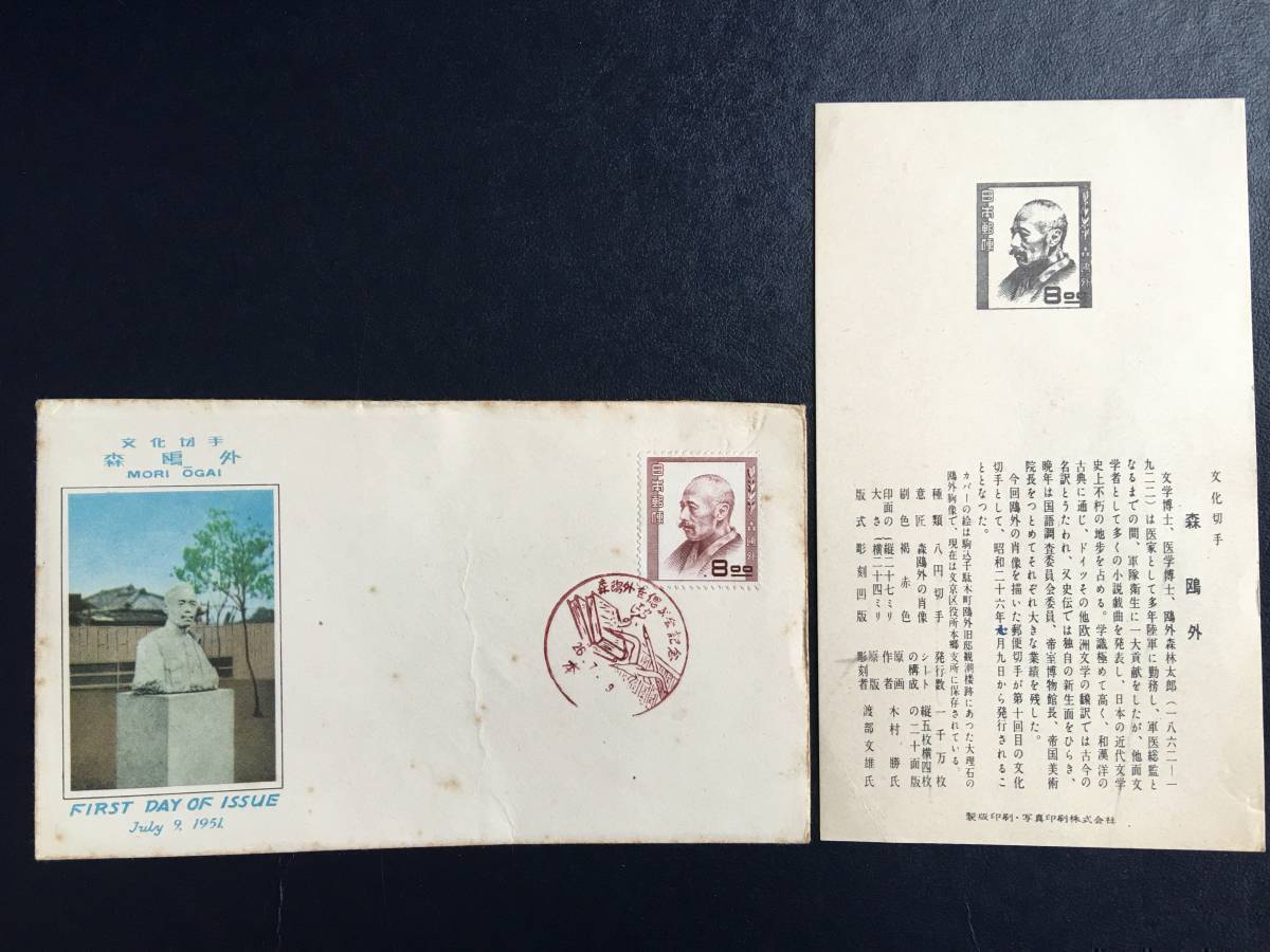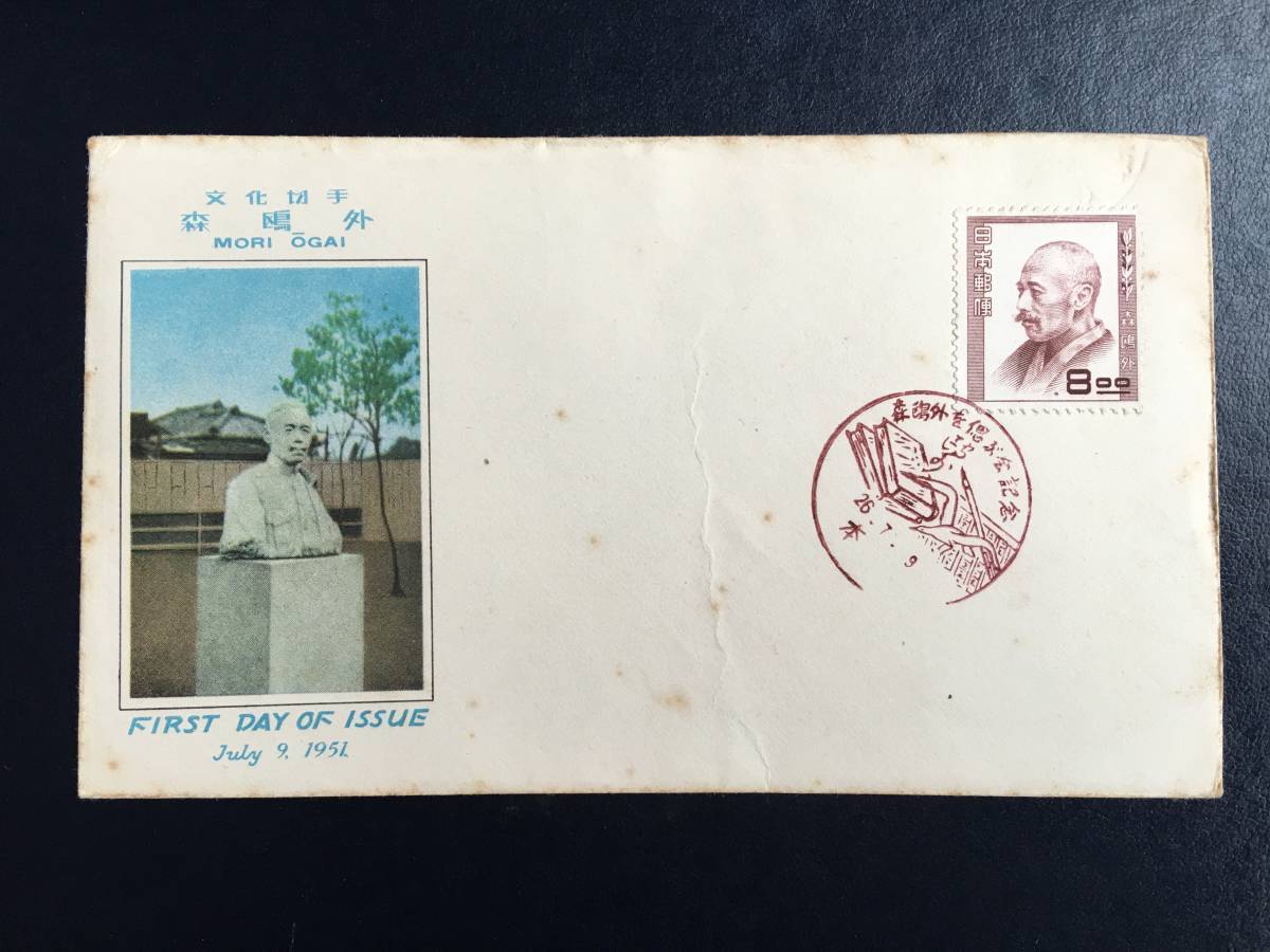 5697 希少 戦後切手 人物切手 文化人切手 森鴎外切手 記念切手 解説書有 本郷? 初日印 記念印 有名人 偉人切手 美術品 FDC 初日記念カバー