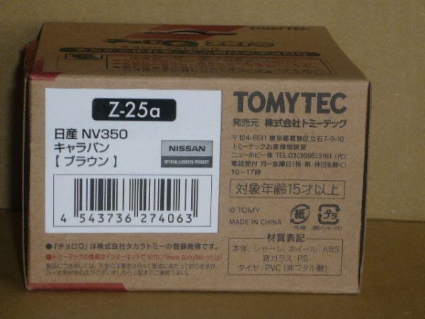 チョロQ ZERO Z-25(a) NV350 キャラバン ブラウンです。箱が少し傷んでいますので,ご了承の上入札ください。商品の状況は写真でご判断の上、ノ-クレ-ム・ノ-リタ-ンでお願いします。保証はできませんが、定形外郵便での発送も可能です。 ※ 最初の連絡は集計などで時間がかかるため、翌日または翌々日になります。
