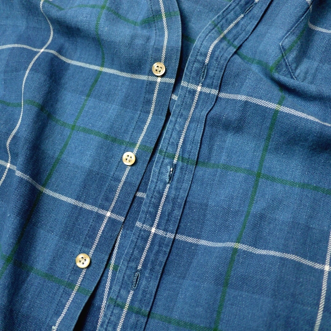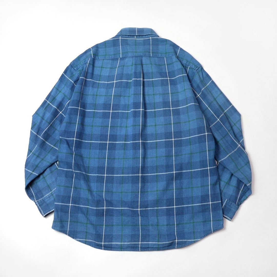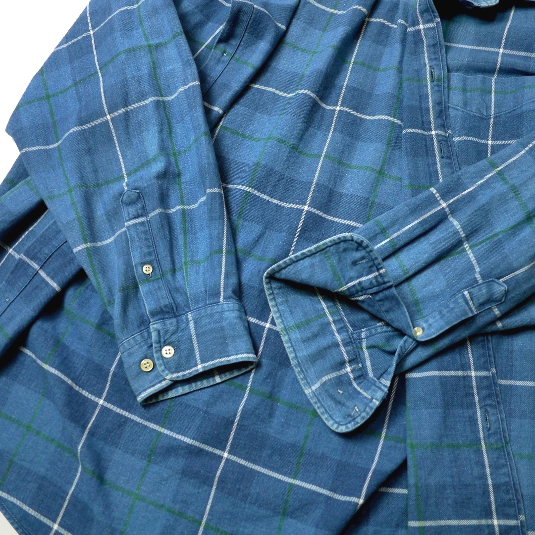 ■ブランド 90s、GAP ■カラー フェードブルー(青、緑、白) ■素材 100%COTTON ■詳細 アメリカで購入したギャップのボタンダウンシャツ、コットンツイルシャツです。 90年代ごろのデカタグで生地はヘビーコットンのタイプになります。デニムシャツに近いような?厚手でシッカリとした生地感です。 一点物と呼べる最高の表情へと経年変化しており存在感は抜群です。色落ち具合もデニムのような雰囲気があってイイ感じです。 人気のビッグシルエット&ビッグサイズ/オーバーサイズです!! ■状態 コットン特有のフェード、アタリ、スレ、第6ボタンホールにホツレあり(使用可能) 着用に問題あるダメージはなく良好です。 ■サイズ 表記 XL (着用感XXL相当 *実寸参考下さい) 着丈前 81cm 着丈後 84cm 肩幅 59cm 身幅 63cm-66cm センタープリーツ入り 胴幅 63cm 裄丈 93cm 脇袖丈 51cm 肩袖丈 63cm アームホール 31cm ■注意事項 状態は細かく確認しておりますが、傷や汚れの見落とし、実寸誤差、色味差異など生じる場合がございます。 不明な点がありましたら入札前にご質問下さい。 商品にあわせて洗濯やクリーニングメンテナンスを施しておりますが、ビンテージやアンティークなど中古品になりますので特性のご理解をお願いします。 |