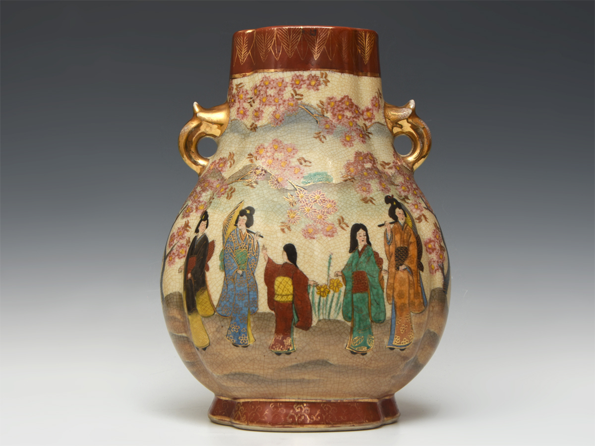薩摩 金彩色絵 花瓶 花器 花生 花入 壺 壷 茶道具 煎茶道具 陶磁器 |