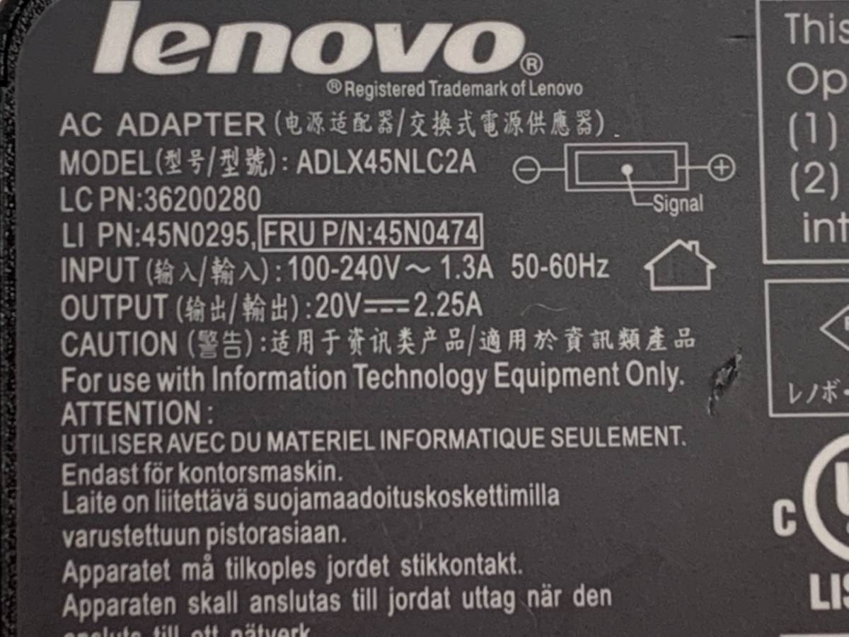 Lenovo 純正 ACアダプタ ADLX45NLC2A 20V=2.25A 角型 (60
